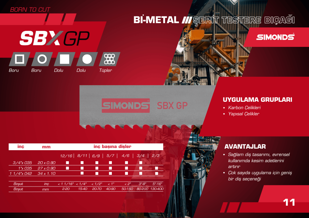 AVANTAJLARI -Daha sessiz kesim -Profil ve yapısal malzemelerin kesimi için özel geliştirilmiş diş geometrisi UYGULAMA GRUPLARI - Karbon Çelikleri. - Yapısal Çelikler.