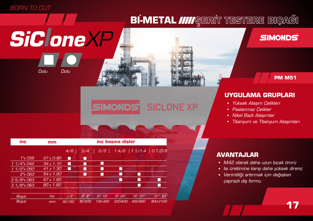 - M42 ve daha uzun bıçak ömrü ısı oluşumuna karşı daha yüksek direnç.