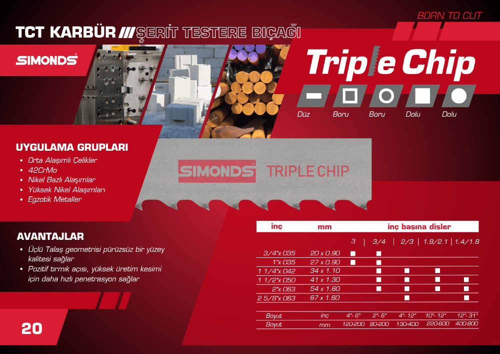 AVANTAJLARI - Üçlü Talaş geometrisi pürüzsüz bir yüzey kalitesi sağlar. - Pozitif tırmık açısı, yüksek üretim kesimi için daha hızlı nüfuz sağlar. UYGULAMA GRUPLARI - Nikel Bazlı Alaşımlar. - Yüksek Nikel Alaşımları. - Egzotik Metaller.
