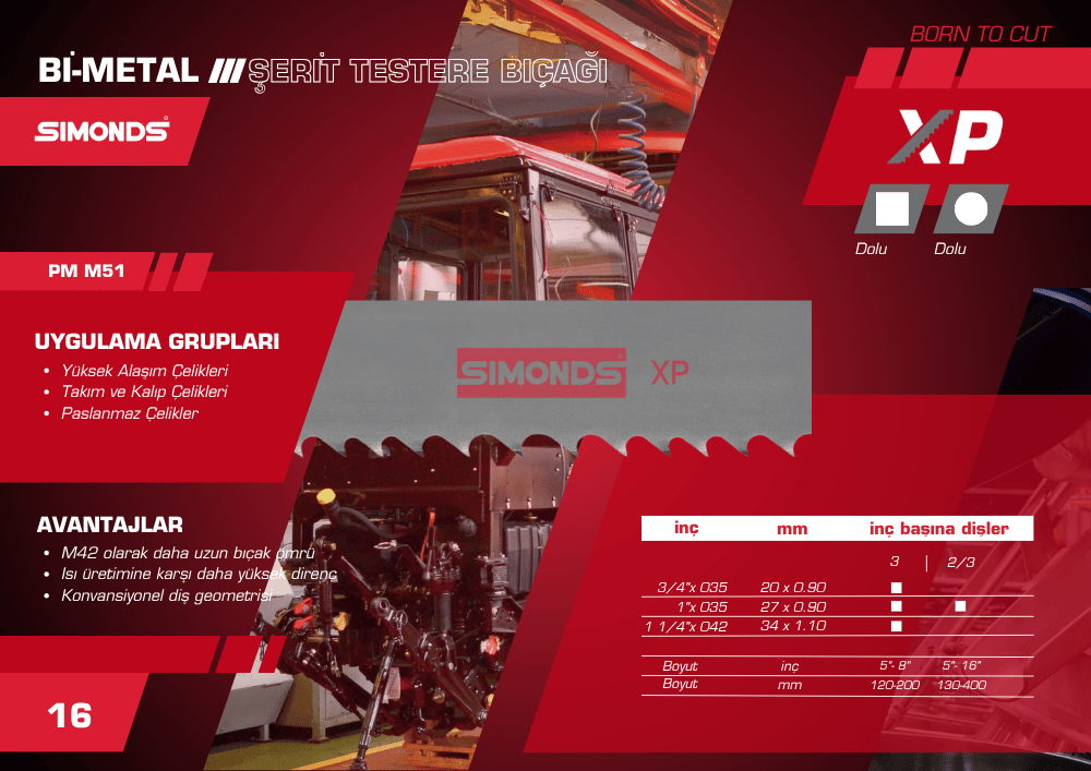 AVANTAJLARI - M42 ve daha uzun bıçak ömrü ısı oluşumuna karşı daha yüksek direnç. - Geleneksel diş geometrisi. UYGULAMA GRUPLARI - Yüksek Alaşımlı Çelikler. - Takım ve Kalıp Çelikleri. - Paslanmaz Çelikler.